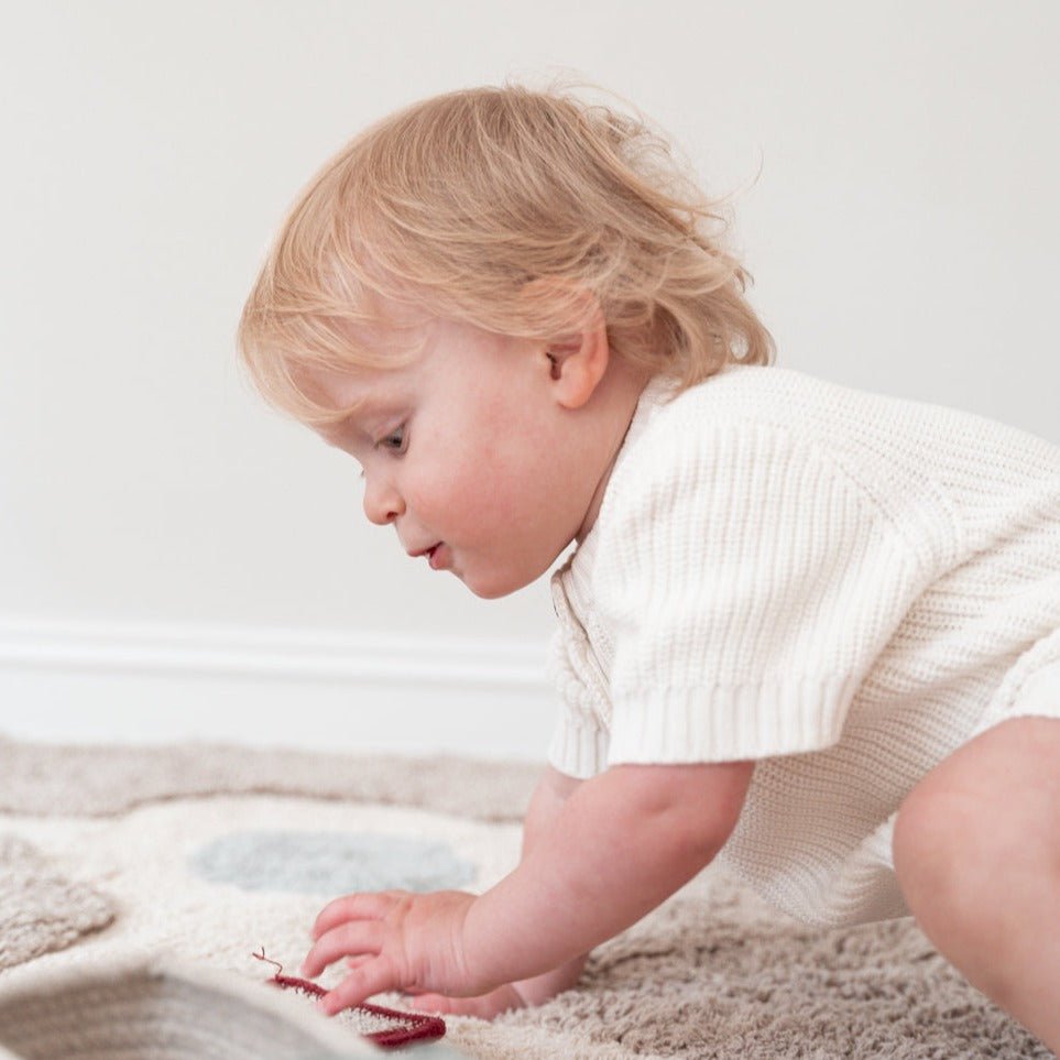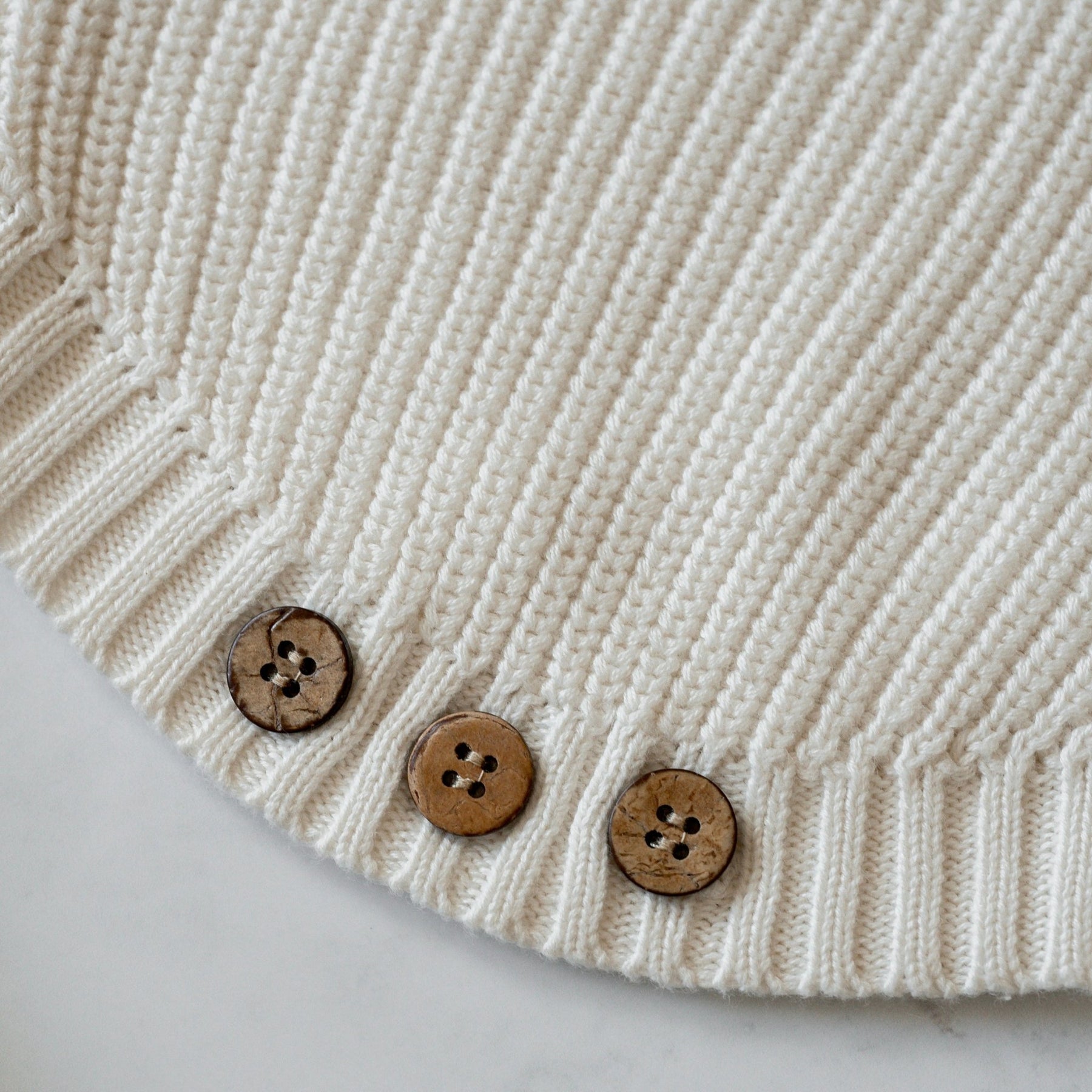 Our bodysuit features a classic vanilla color, making it perfect for both boys and girls. The knit fabric adds a beautiful texture to the bodysuit, giving it a stylish and sophisticated look.