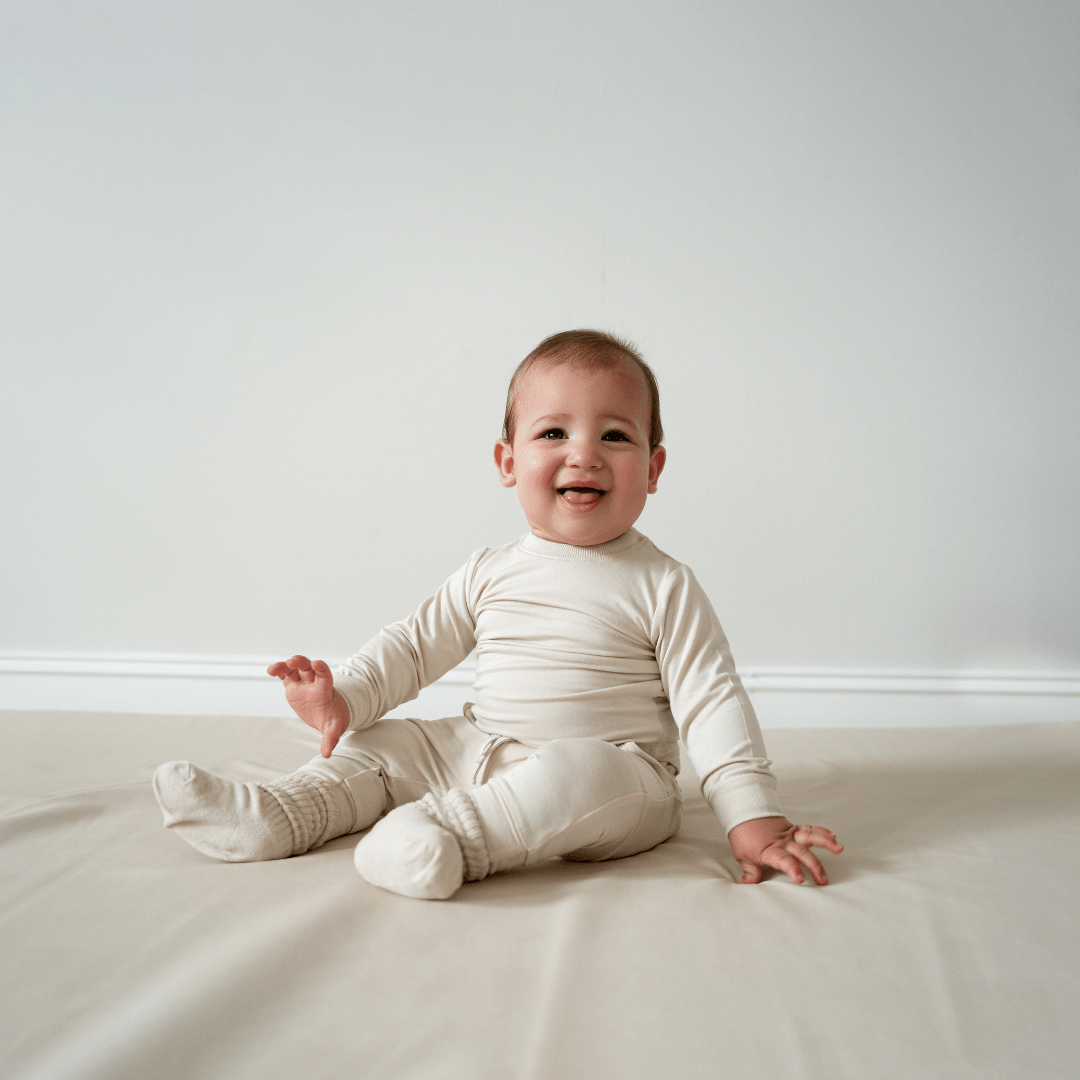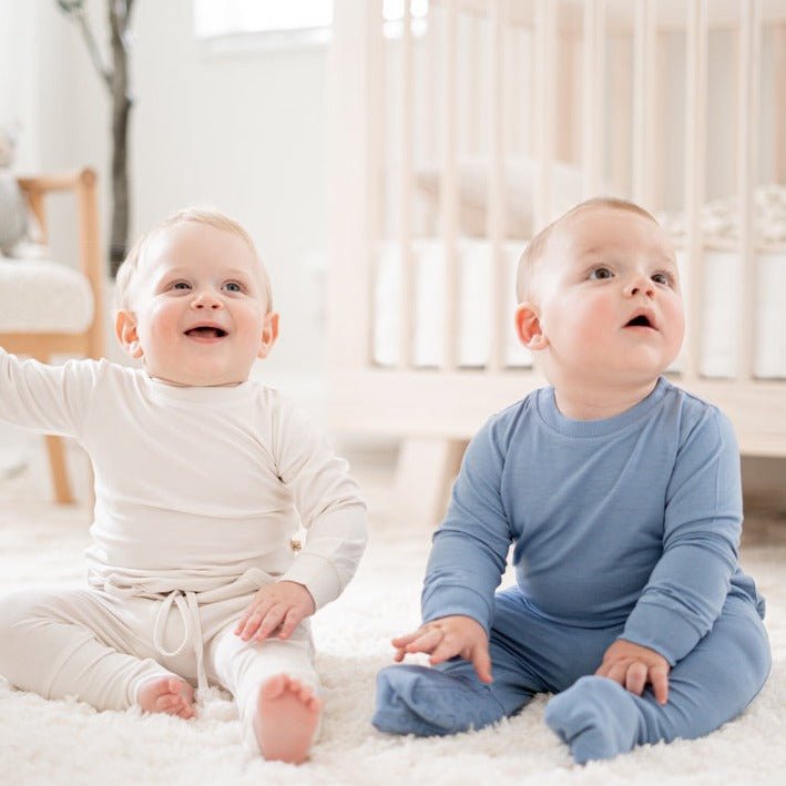 These bamboo jogger pants for babies are soft and gender-neutral with adjustable waistband and convertible footies. Perfect for playtime, naptime or anytime in between.