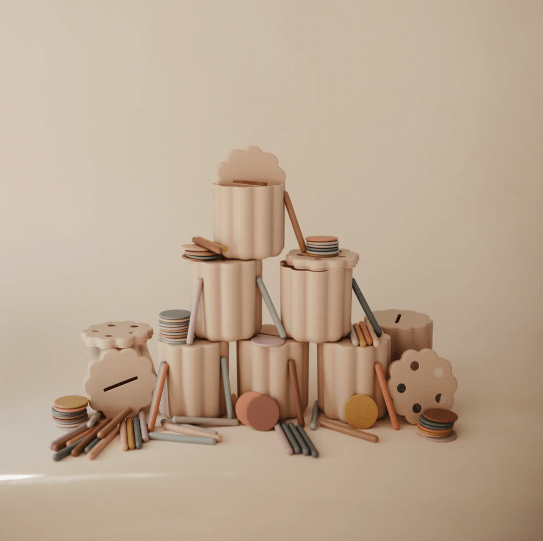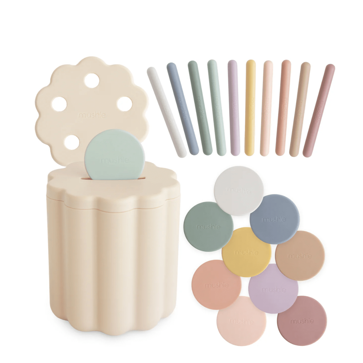 Introduce sorting and matching with our coin & tube sorting box set. The round scalloped box comes with two interchangeable lids and is made of durable PP plastic. As littles fit the 20 colorful coins and tubes through the corresponding openings, they can develop fine motor skills and hand-eye coordination. Whether they're matching or sorting, this versatile toy offers hours of educational play for toddlers.
