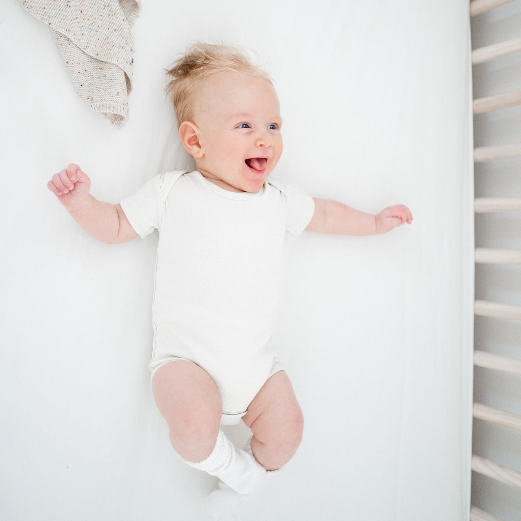 You will be as smitten as we are once you feel the softness of this bodysuit designed just for your little bundle of joy. It features a crew neck with short sleeves and fastenings at the bottom for an easy on and off. The perfect addition for baby's wardrobe.