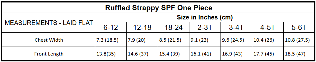 Our ruffled strappy one-piece swimsuit in oranges brings a bright, playful feel to sun-safe swim. Designed with soft ruffle straps and UPF 50+ fabric, it offers comfort, flexibility, and an easy fit for long days spent splashing, playing, and making summer memories.