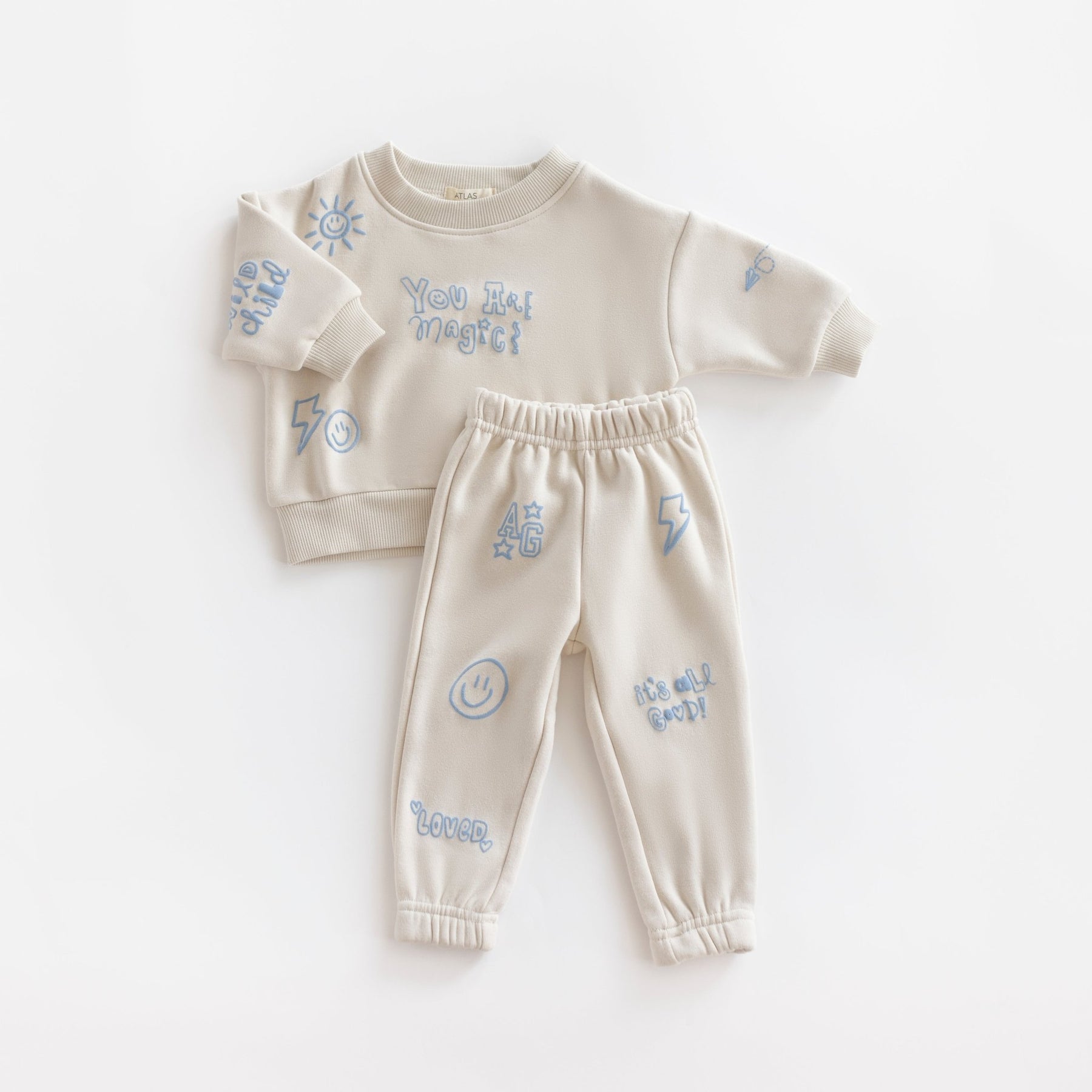 Embrace the enchantment of childhood with our You Are Magic Sweat Set, where each piece is sprinkled with whimsical sayings and designs to inspire your little ones. This set is crafted from a comfortable blend of 35% cotton, 61% polyester, and 4% spandex, offering the perfect mix of softness, durability, and just enough stretch for all-day play.